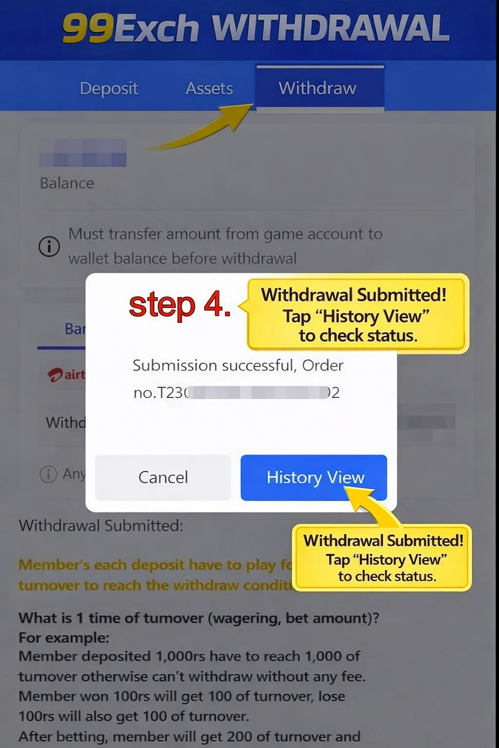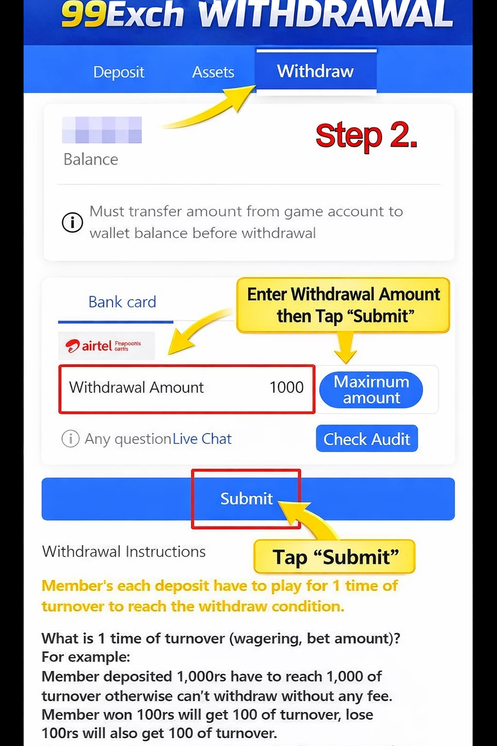 • Before requesting withdrawal, open your 99exch panel and capture the current balance.